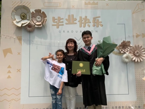 小帕的家人来到北京语言大学,参加他的毕业典礼